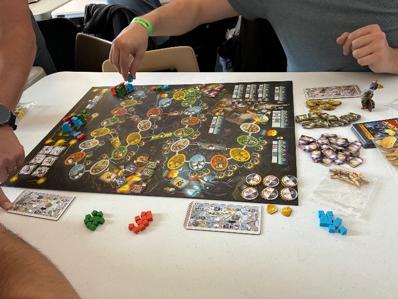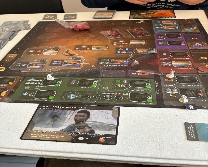 Pour ma part le samedi, j’ai fait le tour du salon, joués à quelques jeux comme Dune Imperium Insurrection, Zenith en 1v1, First Rat que je n’avais pas eu l’occasion de tester à Cannes.