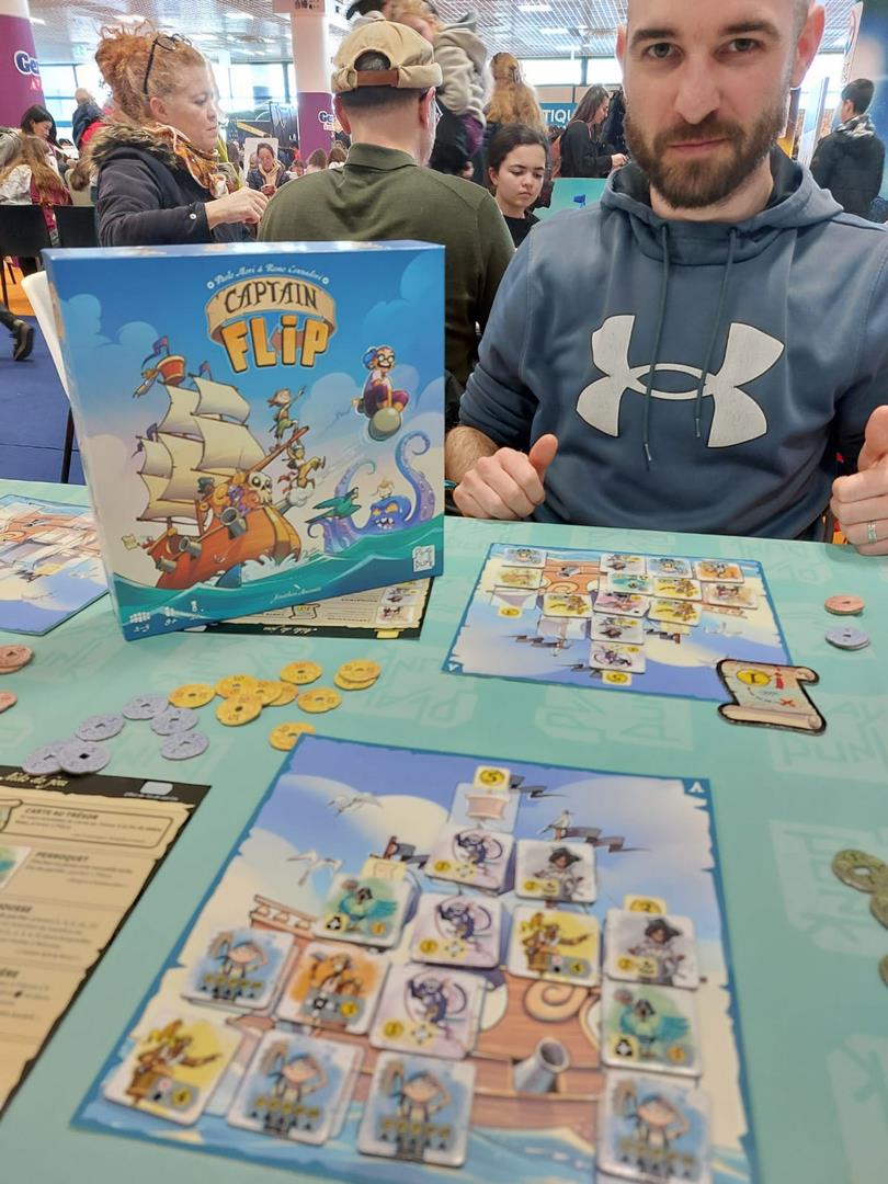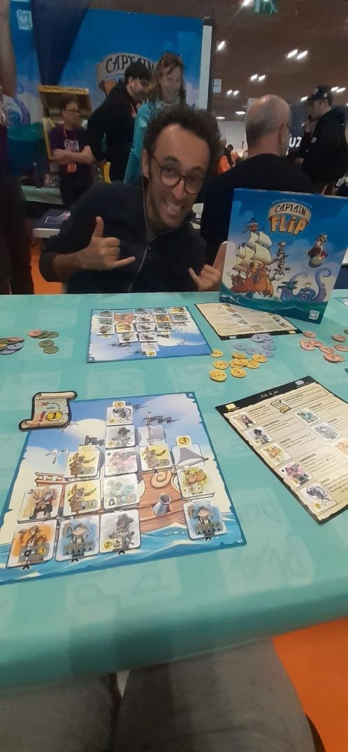 C’est pour ça que je te dis pour Captain Flip, Paolo au bout de dix secondes de pitch, on s’est dit que c’était celui-là, on veut y jouer. On lui a dit on le fait, c’est sûr. On le fait et on était persuadé. Et l’expérience montre que on ne s’est pas planter parce que ça ne plait pas qu’à nous. Mais parce que on sait ce qui plaît dans jeu : c’est immédiat, c’est simple. Tout le monde peut jouer. Y a une petite tension et des trucs qui font que je pourrais en faire 100 parties. Je ne signerais jamais un jeu que je vais trouver bien mais je sais qu’à la dixième partie j’aurai fait le tour. Ça ne m’intéresse pas. Je vais l’acheter, je vais faire dix parties et c’est cool mais je ne l’éditerais pas.