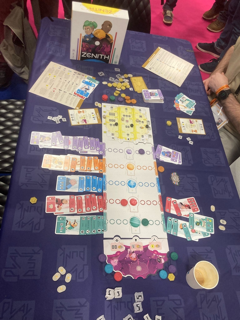 AB : Sur Captain Flip ça a été hyper important. Après sur les jeux je crois qu’ils acceptent à peu près tous les jeux mais à nouveau c’est à double tranchant. On a besoin d’un développeur pour coder le jeu, on paye le développeur dans tous les cas. Là à nouveau on s’entoure de quelqu’un qui sait faire, et on le paye pour ça. On l’a sorti trois mois avant. Il y a eu énormément de gens pour jouer en ligne et ça a contribué à ce que le lancement soit fort. Par contre, quand tu lances ton jeu gratuitement en ligne avant la sortie il faut qu’il soit bien. S’il n’est pas bien, les gens disent : « ah ben oui, j’ai joué, c’est pas bien, je l’achèterai pas. » Mais du coup sur Zenith comme c’est un jeu un peu plus compliqué on n’a pas tant de parties que ça sur BGA donc on va voir, le jeu n’est pas sorti encore (en physique en février 2025). Donc on va voir ça avec le bouche à oreille. Ce qui est intéressant aussi avec BGA c’est qu’on a les stats, on a de la data et tout c’est impressionnant. On sait combien de gens différents, dans quel pays, ont essayé ce jeu. C’est vachement important. Et ça, c’est le meilleur outil marketing. Parce que, finalement, ça ne te coute que le développement. Tu touches, par exemple avant la sortie de captain flip, à la louche 12.000 joueurs qui avaient essayé le jeu.